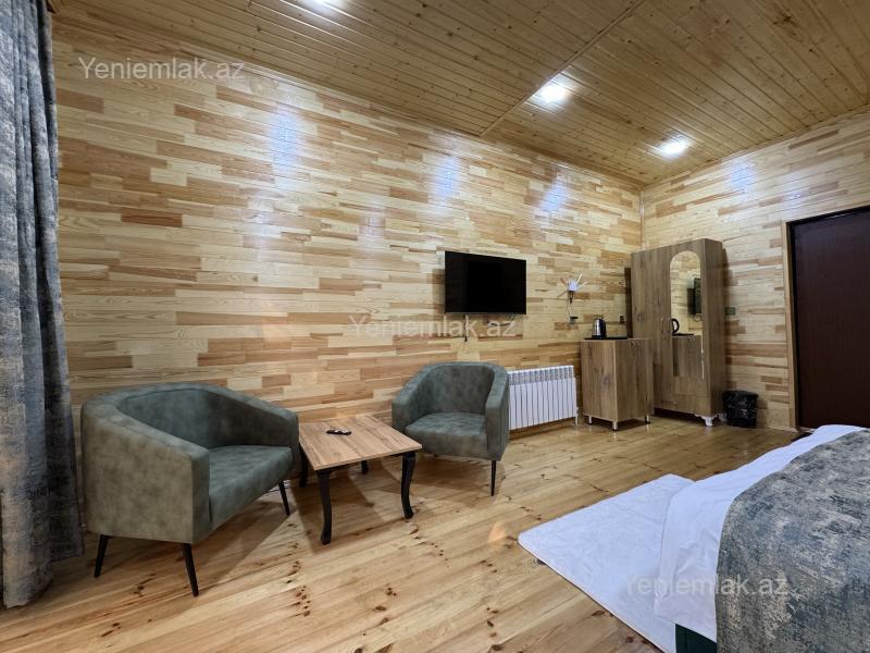 2 neferlik kotej Quba Qecres kendinde yerlesir.Yeni isdifadeye verilib.Meşeye acilan gozel verenda.Balkonda stol stul Wifi+Smart TV.Tok cayniki ve.s