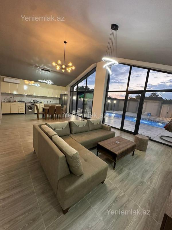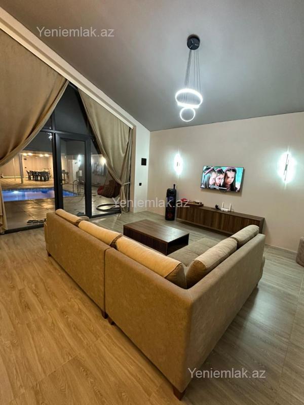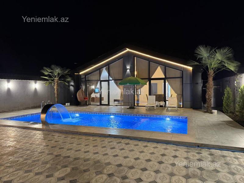 Qebele vendam kendinde yerlesen muasir a frame tipli evimiz gunluk kraye verilir 3 yataq otagi3 hamam otagi var 6/7 neferlik evdir Hovuz8/4 olcudedir usag ucunde hovuzun yeri var Isti baseynlidir