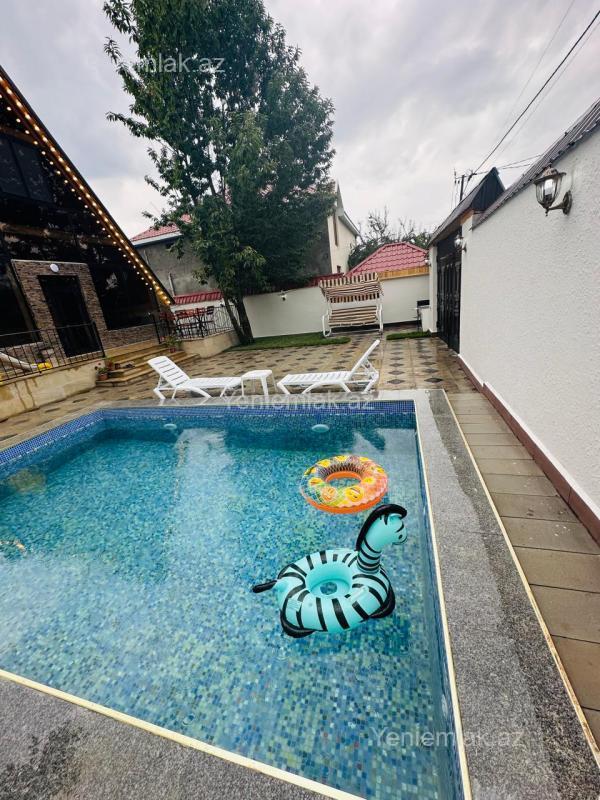 3 yataq otağı 7 yatacag 2 hamam ws kandisoner wifi mangal samavar her bir seraiti var filtirli baseyni 7 nin 3 e derinliyi 1.50