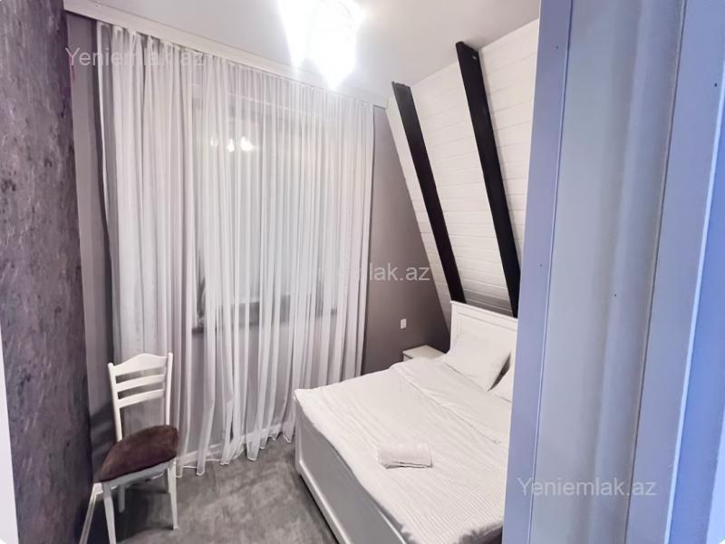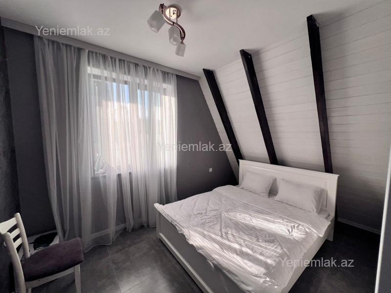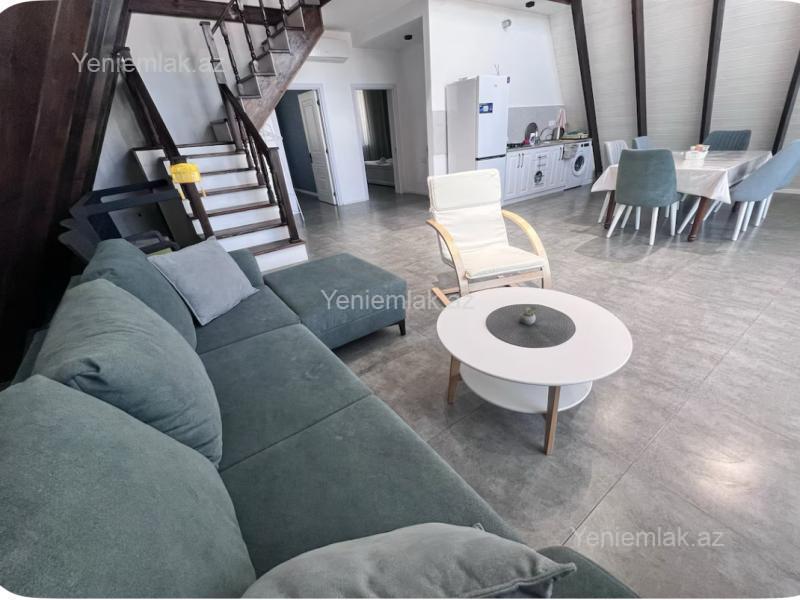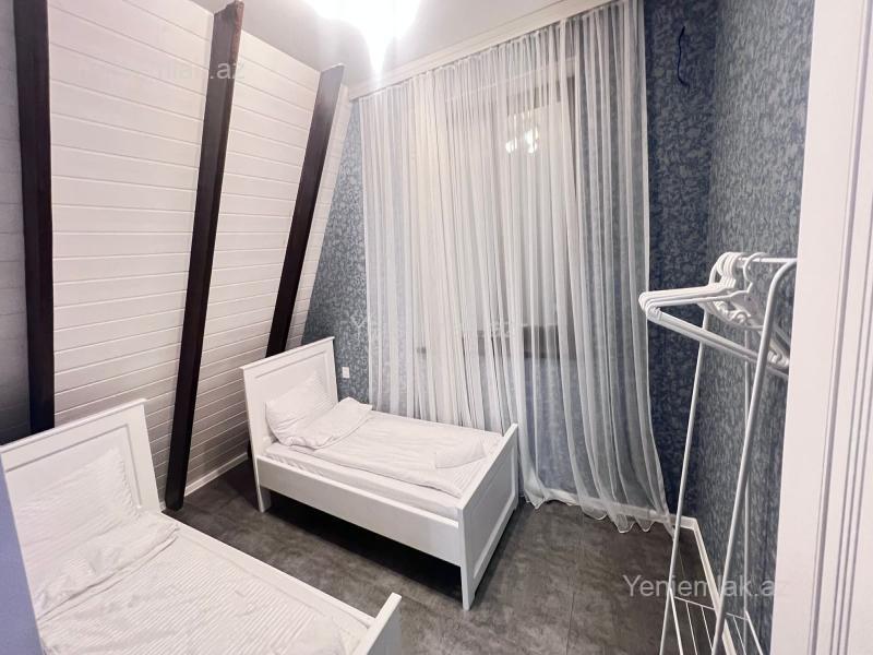 Qəbələ rayonunda modern üslubda tikilmiş 3 yataq otaği 2 hamam otaği böyük zal ve mətbəxdən ibarət A frame evimiz günlük kirayə verilir . Çarpayi sayi 7 - 8 ədəd . Həyətində manqal şiş, samavar var