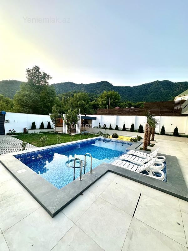 Dağ mənzərəli, sakit ərazidə, magistral yoldan 350 metr məsafədə yerləşən villa xidmətinizdədir.3 yataq otağı, 2 hamam otağı, zal və studiya mətbəxdən ibarətdir.Həyətində söhbətgahı, besetkası var və bütün lazımi əşyalarnan təchiz olunub.Terras və besetkada mərkəzi musiqi sistemi, proektor quraşdırılıb.Ev yalnız ailələrə xidmət göstərir.