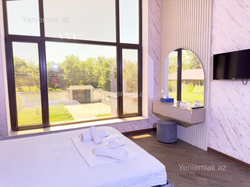 Qiymət qeyri iş günlərinə daxil deyil. Ev Qəbələnon Vəndam qəsəbəsində 7 gözəl hotelin yaxınlığında yerləşir. Evdə 4 yataq otagi (4 qoşa çarpayı,3 extrabed,2 divan) ,1qonaq otagi və 2 sanitar qovşağı (hamam tualet) var. Evin istənilən şəraiti mövcuddur: Wifi,televizor,kombi sistemi,hamam və tualetdə isti pol və lazım olan bütün qab qacaq var.Qaz,isıq,su daimidir.Həyətdə filtirli hovuz, besetka,manqal,samovar,sac və s var. Əlavə məlumat uçun əlaqə saxliya bilərsiz.