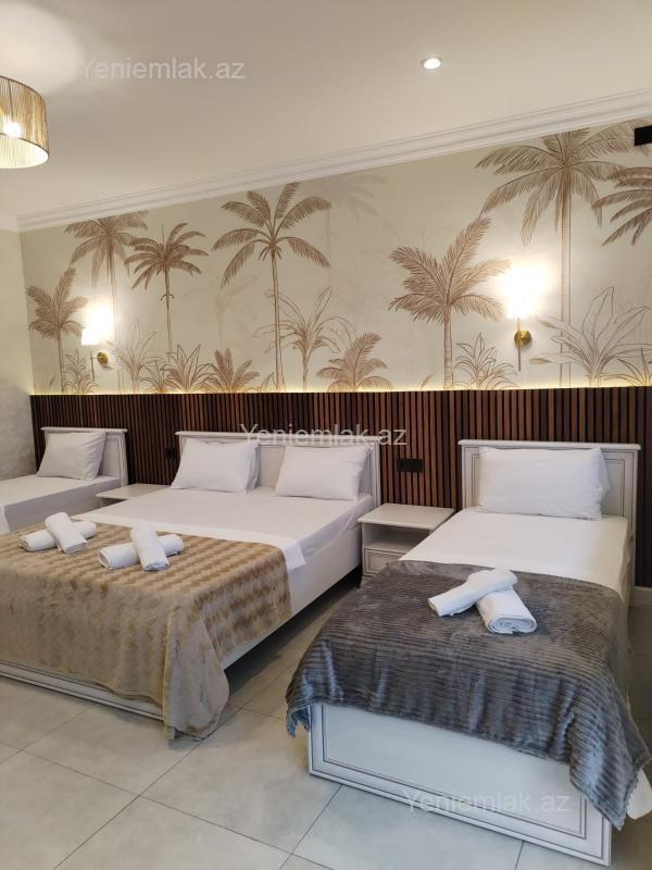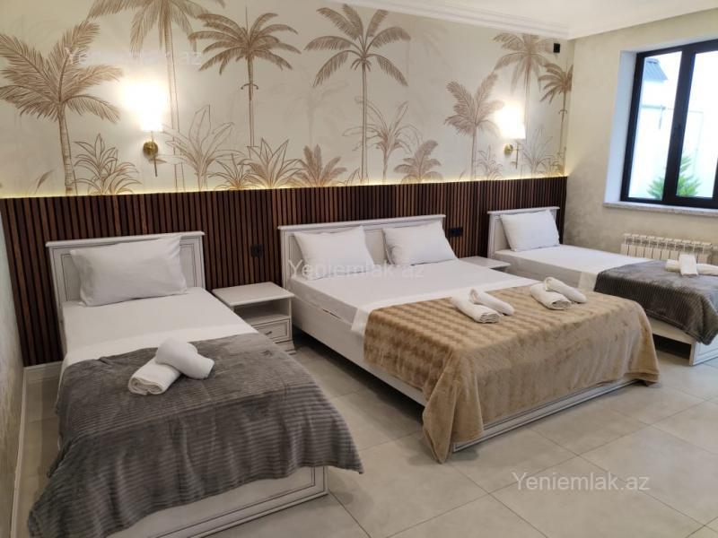 ?QAPALI / AÇIQ Hovuzlu Villa Qəbələnin mərkəzinə yaxın yerdə(pastar məhəlləsində)yerləşir ? 5 yataq otağından, 1 böyük zal, daxili mətbəx, çöl/yay mətbəx, 4 sanitar qovşaqdan ibarətdir. ????16- 18nəfərin gecələməsi üçün rahat şərait qurulub. ? Kombi sistemi ?♀️ Qapalı/açıq hovuz(filtirli8x6) ?️ 6 maşınlıq parking ? Bisetka, ☕️ Samovar, ♨️ Sac, ? Manqal (özəl tikilişli) ❄️ Kondisioner ? Tv(smart), ? Wifi, ? Qab yuyan, ? Paltar yuyan, ? kofe maşını, ? elektirik soba, ? Ütü, ? Fen və digər lazimi avadanlıqlarla təchiz olunmuşdur. ? Əlavə ödənişlə Bakıdan və Qəbələ dəmiryol vağzalında transportda mümkündür (11 nəfərlik mikroavtobus) təklif olunur.