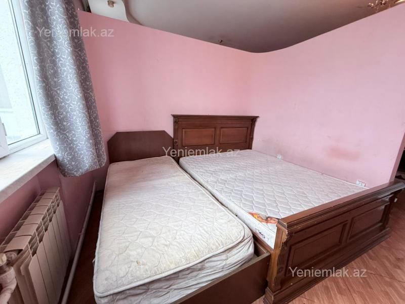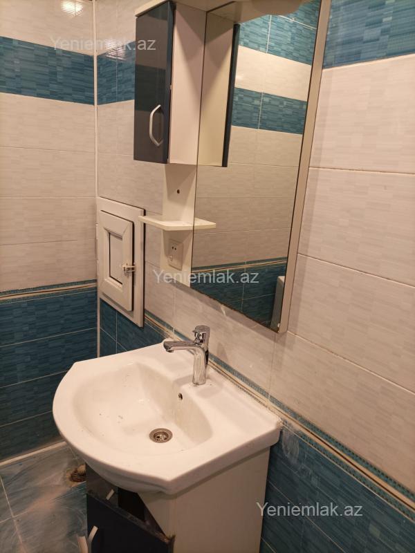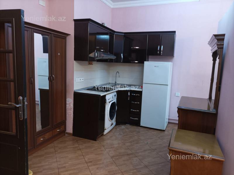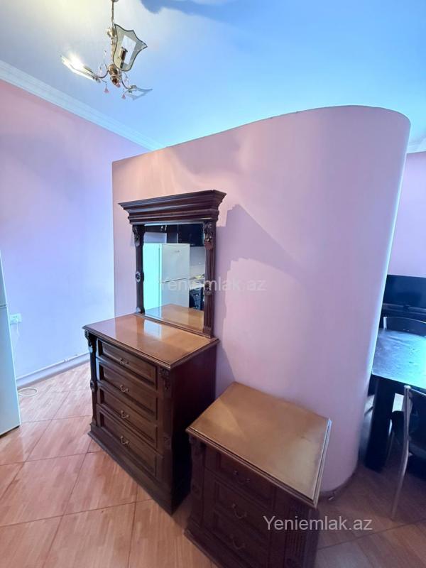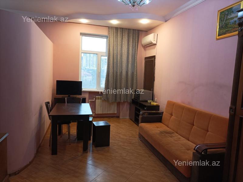 Qarayevde 17 mertebeli binani 6-ci mertebesinde sahesi 60 kvm olan 1 otaqli menzil kiraye verilir esyali qaz su isiq diami xidmet haqqi 30 %