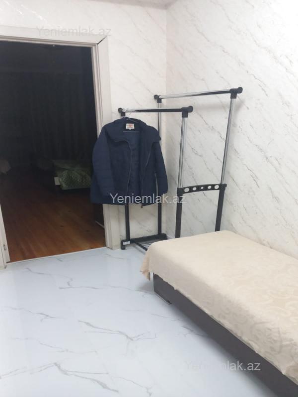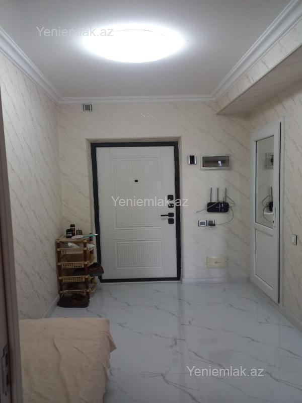 2 otaqli mənzil – studiya tipli mətbəx və geniş yataq otağı - Açıq planlı mətbəx: parlaq boz rəngli dolablar, mərmər naxışlı arxa panel, qaz plitəsi, aspirator, ikiqat lavabolu iş sahəsi. - Texnika: paltaryuyan maşın, iki qapılı soyuducu, elektrik çaydanı. - Yemək zonası: qatlanan süfrə və 2 ədəd toxuma stul. - İşıqlandırma: dekorativ asma lusturlar və LED işıqlandırma. - Daxili giriş: dəmir giriş qapısı, iri güzgülü şkaf/kupe, internet marşrutizatoru üçün quraşdırma. - Otaq: iri ölçülü çarpayı, sürüşən qapılı böyük qarderob, pəncərə önündə işıqlı künc, oturacaq və köməkçi masa. - Döşəmələr: yataq otağında taxta döşəmə, giriş və mətbəx-holl hissəsində parlaq mərmər effekti. - Pəncərə və pərdələr: gün işığını yaxşı alan geniş pəncərə, yaşıl tonlarda pərdələr. - Əlavələr: paltarqurudan, su üçün böyük balon, divardan asılan TV üçün yer ayrılıb.Yaşayacaqlara xeyirli olsun,Ofis haqqı 30% edir