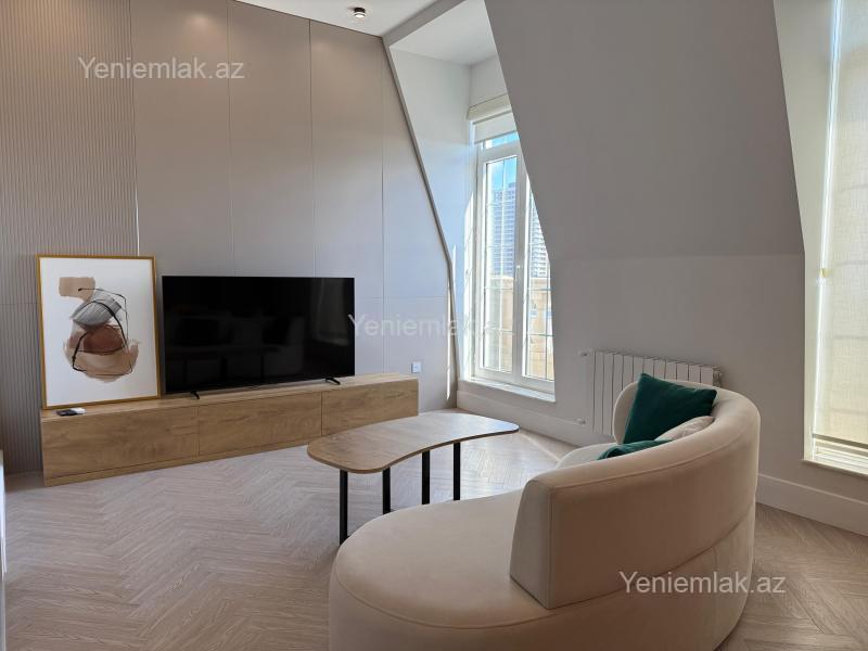 Şəhərin ən elit ərazilərindən biri olan Ağ Şəhərdə, Nizami Parkı və Fəvvarələr Meydanının yaxınlığında yerləşən, London üslubunda inşa olunmuş prestijli Knightsbridge Residence kompleksində, dəniz mənzərəli, 2 otaqlı, modern dizaynlı əla təmirli mənzil kirayə verilir. Mənzil komfortlu və rahat yaşam üçün zəruri olan bütün müasir mebel və məişət texnikası ilə tam təchiz olunub. İstilik sistemi kombidir, isti döşəmə və hər otaqda kondisioner mövcuddur. Kompleksin üstünlükləri: 7/24 mühafizə və təhlükəsizlik xidməti Yalnız sakinlər üçün nəzərdə tutulmuş qapalı həyət Yeraltı avtodayanacaq Ətraflı məlumat və baxış üçün əlaqə saxlaya bilərsiniz. Qeyd: Şirkətin xidmət haqqı icarəçi tərəfindən 30% təşkil edir.