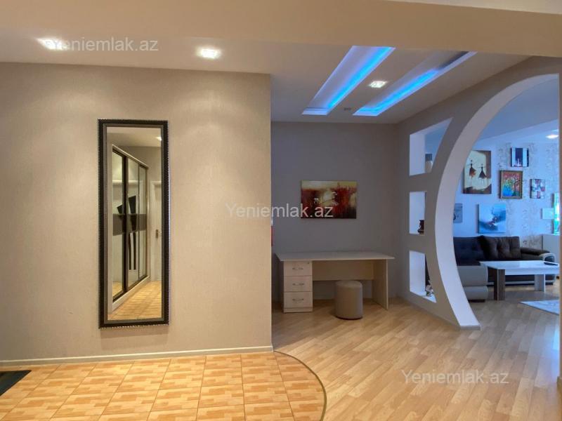 Kirayə verilən bu mənzil Tibilisi prospektindəki keçmiş Nəqliyyat Nazirliyinin yaxınlığında AZİNKO-nun binasında yerləşir. (“Yaşıl ada” uşaq baxçası ilə üzbəüz) Ünvan: Ənvər Hüseynov küçəsi – ev 7. Mülkiyyət sənədi çıxarışdır (kupça). Otaq sayı -3. Mərtəbə 20\15.Sahə-150 kv metr. Super avrotəmirlidir. Tanınmış dizaynerin eskizləri əsasında böyük şirkət tərəfindən təmir edilib. Mebel və əşyalarla tam təmin olunub. O cümlədən, qabyuyan, paltaryuyan, otaqların hamısında split kondisioner, 3 ədəd LED TV, no-forst soyuducu, mətbəx sobası və s. Su, qaz, işıq daimidir. İsitmə sistemi – ECA kombidir. 2 ədəd sanitar qovşağı, 1 ədəd balkonu var. Pəncərələr həm həyətə, həm də küçəyə baxır (skvaznoy). Bina 24 saat mühafizə olunur. Kamera sistemi ilə təmin olunub. Blok qapıları kodlu, domafonludur. Binanın genış həyəti və böyük yeraltı qarajı var. 2 ədəd sürətli lifti var. Liftlər qaraja qədər enir. Aylıq kirayə haqqı 1200 manat. Uşaqlı ailəyə verilmir. Nigah haqqında sənəd tələb olunmur. Minimum 1 illik müddətə verilir. 1 aylıq kirayə haqqı məbləğində depozit tələb olunur.