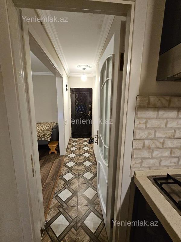 Sumqayıt şəhəri 5-ci mikrorayon 5/2 1 otaq panel bina orta blok 1 ədəd eyvanı plastik pəncərələr mətbəx mebeli mərkəzi istilik sistemi kondisoner dəhlizdə şkaf tam təmirli mənzil