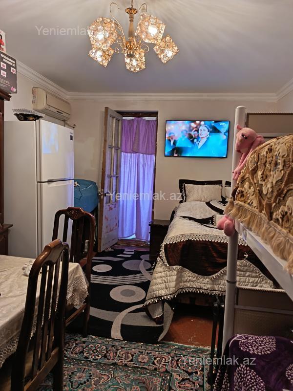 Sabunçu rayonu, Bakıxanov qəsəbəsində yerləşən 1 otaqlı mənzilimi satıram. Ev yerləşmə yerinə görə çox əlverişlidir. Ətrafında bütün ictimai iaşə obyekletleri mövcuddur. Məktəbə,bağçaya,poliklinika və s yaxındır. Dayanacaq evin yanındadır. İşıq, su daimidir. Binanın lifti işləkdir. Kondisioner qalacaq. Ev orta temirlidir.