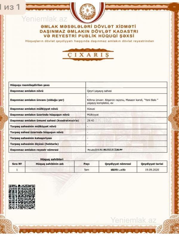 Masazır, Yeni Baki yaşayış kompleksi, bina 15