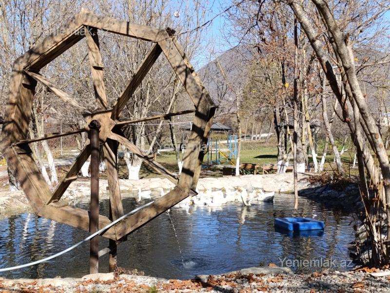 Şamaxı rayonunda, 5 hektar ərazini əhatə edən, işlək, daim müştərisi olan istirahət mərkəzi satılır! 3 ədəd təmirli, əşyalı A frame ev Bütün əşya və avadanlıqlarla təmin olunmuş restoran və mətbəx ( 250 nəfərlik qab-qacaq dəsti, 63 ədəd 6 nəfərlik masa oturacaq dəsti, 4 soyuducu, 18 manqal, 12 samovar) Söhbətgahlar Xidməti ev və camaşırxana Təndirxana Uşaq və voleybol meydançaları 2 ədəd göl (farel və sazan balıqlı) 6 bulaq (biri kükürdlü) 100-dən çox ağacı olan meyvə bağı 72 və 40 tonluq su hovuzları 3 ədəd qayıq və 1 katamaran var Ərazidən çay keçir Sənədi çıxarış (kupça) Qiyməti milyon yarım. Real alıcı ilə razılaşma olacaq.