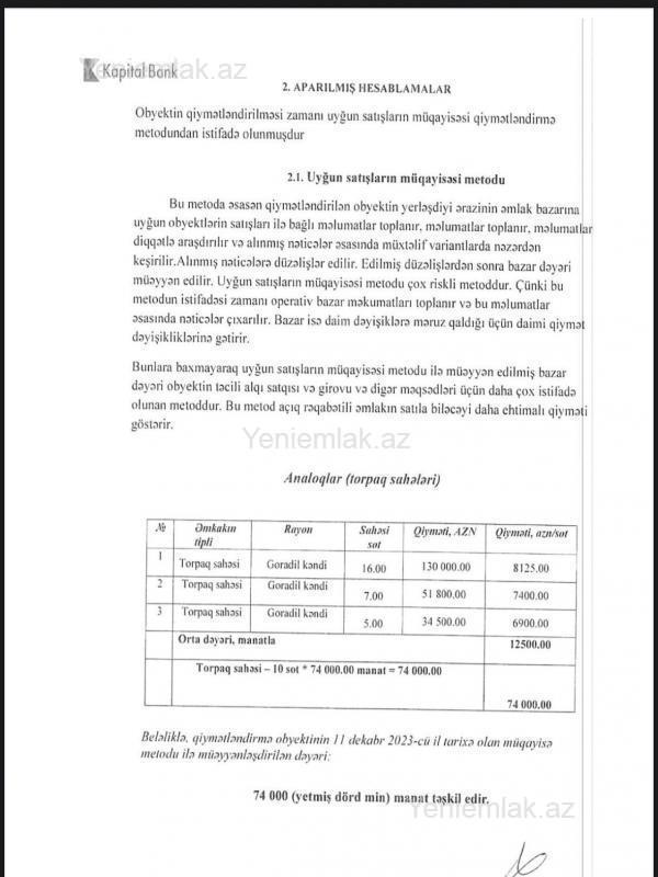 Abşeron rayonu, Goradil kəndində yerləşən 10 sot paket kupçalı torpaq sahəsi satışa çıxarılıb. Torpaq sahəsi yaşayış üçün əlverişli ərazidə yerləşir. Ətrafında yaşayış var, qaz, su, işıq xətləri mövcuddur. Sənədləri tam qaydasındadır, paket kupça (torpaq və tikili üçün çıxarış almaq mümkündür). Rahat yerləşməsi ilə seçilən bu sahə həm fərdi yaşayış evi tikmək, həm də investisiya məqsədilə almaq üçün uyğun variantdır. Real alıcı ilə qiymətdə razılaşma olacaq