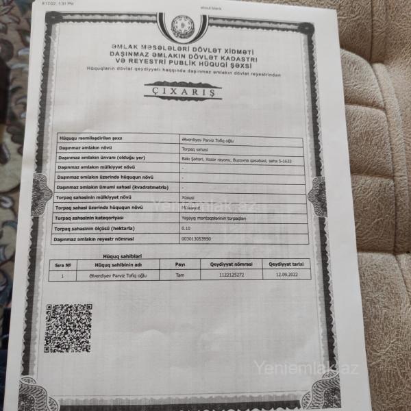 Buzovna da Ayida park Albalı super market yulnun üsdü 10 sot torpaq sahəsi di