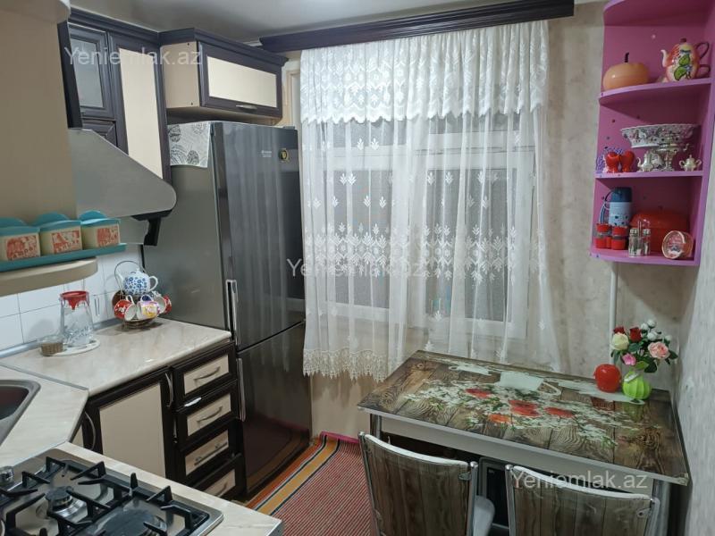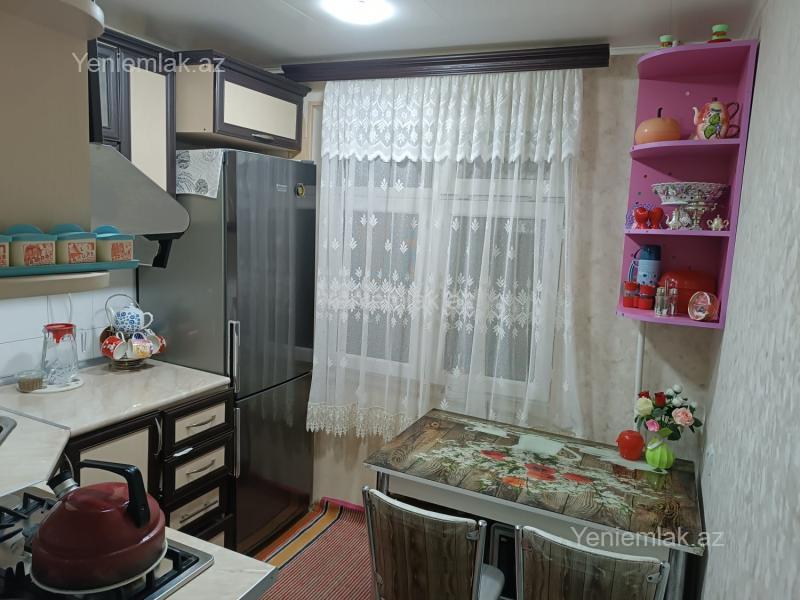 5ci mkr .Daş bina.Xruşov lahiyəli,otaqların xodları ayrı-ayrıdır.4 cü mərtəbədə yerləşir və orta evdir.Ayrıca sütunlu balkonu var.