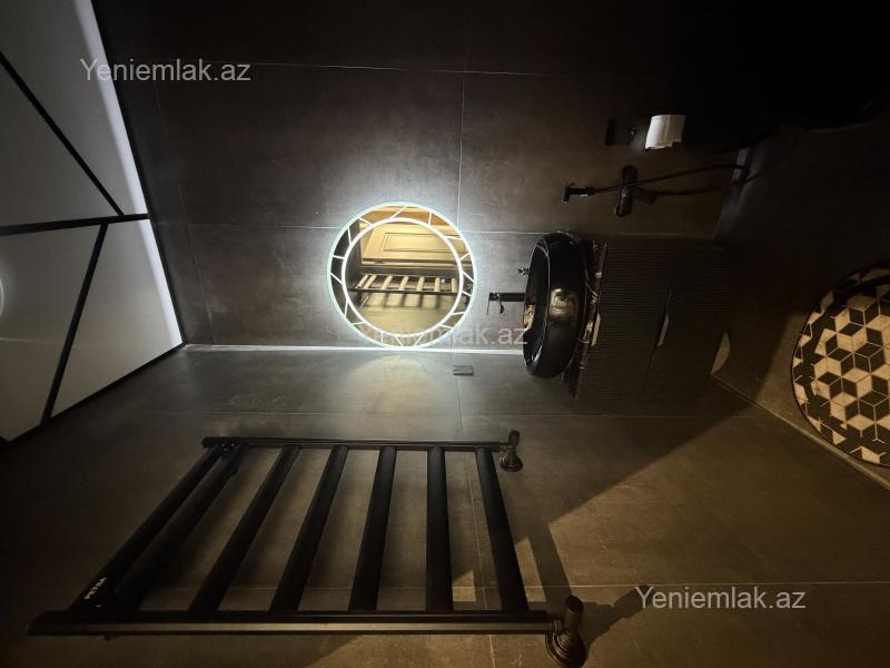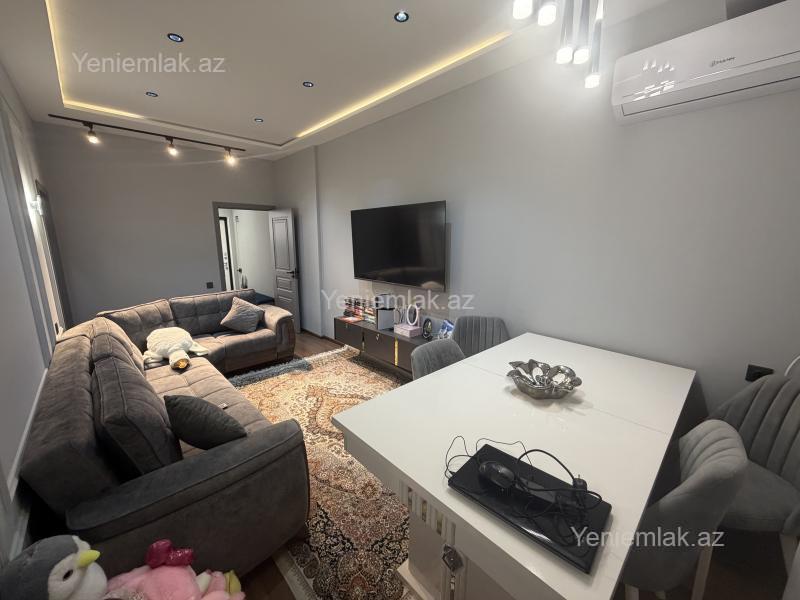 Menzil Neptun marketin arxasinda yeni tikilmish binada 10 mertebeli yashayish binasinin 4 cu mertebesinde yerleshir. 5 ay önce temir tamamlanib. Istilik sistemi kombi isti pol. Kondisioner. Qaz su ishiq daimidir. Kupcasi var . Temir zamani en bahali ve keyfiyyetli materiallardan istifade olunub . Menzil mebeller ile ve qismen elektrotexnika ile birlikde satilir.