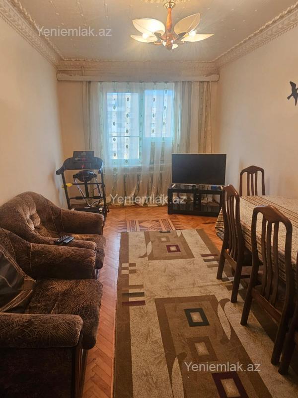 Kiyev layihəli, orta blok, 3 otaga düzəlib, döşəmə parket, orta təmirli mənzildir, ofis xidmət haqqı 1%
