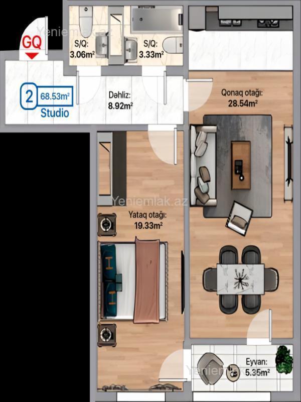 Xırdalanda, Blue City yaşayış kompleksində, 14 mərtəbəli binanın 9-cu mərtəbəsində zal-studiya layihəli 2 otaqlı, sahəsi 68.53 kv.m. olan təmirsiz mənzil satılır. Sayğacların və yük liftinin pulu ödənilib. Binada yaşayış var. Təmir edib yaşaya bilərsiz. Bu binanın kupçası var. Qiymətdə razılaşmaq olar. Ətraflı məlumat üçün zəng edin.