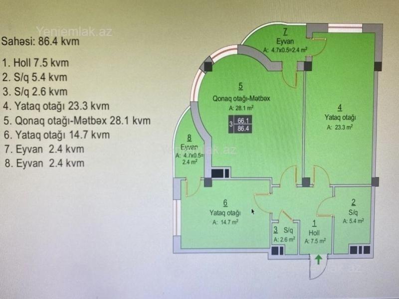 Ewya ve texnikali ile isteyen olsa 75000 ewyasiz 65000 menzilden copde goturulmuyecek ne gorursuz hammisi qalacaq .texnikasinnan tutmus mebel xalcasina perdesine kimi .her bir sey teze alinib baxahli alinib keyfiyyetli alinib .hazir i̇poteka ! bu cur ayliq ödeniș ile bele dolu remontlu menzil bulvar erazsinide yoxdu. menzilin bir terefi ulduz parkina bir terefi denize bir terefi ise mehelleye baxir . 2 balkondan, 2 hamam tualet 3 otaqdan ibaretdir . cox ideal cox isti menzildir. ötürmə aktiv 2 il ödənilib! sumqayıt şəhəri,bulvar küçəsi,mirvari city y/kompleksində yerləşən,yeni tikili 10 mərtəbəli binanın 8-ci mərtəbəsində ümumi sahəsi 86.6 kv/m olan, 3 otaqlı studio , yeni təmirli mənzil satılır. sənəd kupça ( çixarş ). i̇şıq, su qaz fasiləsiz, istilik sistemi kombidir.mənzil i̇poteka fondunun satmaq öhdəliyi ilə kirayə mənzil layihəsindəndir.i̇poteka şərtləri, i̇lkin ödəniş 65000 manat, 23 il ərzində aylıq 608 manat ödəməklə bu mənzilə sahib ola bilərsiniz. rəsmi işi olan, həmçinin sahibkarlıq fəaliyyəti ilə məşğul olan hər kəs bu fürsətdən yararlana bilər. kompleksin 7/24 mühavizə xidməti, yaxınlığında məktəb,baxça, marketlər həyətində və qarajında maşın dayanacağı , geniş həyətində böyüklər və kiçiklər üçün nəzərdə tutulmuş istirahət guşəsi , yaşıllıq zolaqları mövcuddur. emlak oz sahibi terefinden satilir ve hec bir elave odenis teleb olunmur