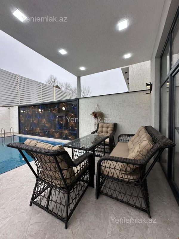 Mərdəkan bağlarında 2.5 Sotda 1 mərtəbə 160 kv.m 4 otaqlı ƏŞYALI super bağ evini təklif edirik. Bağ evi zal, mətbəx, 3 yataq otağı, holl və 2 sanuzeldən ibarətdir. Otaqlarda asılmış pərdə və lyüsturları, hündür tavanları, mətbəx mebeli, duş kabinalı sanuzeli, quraşdırılmış işıqlandırma sistemi var. Ev yüksək zövq və keyfiyyətlə təmir olunub. Su, qaz, işıq daimidir. İstilik sistemi kombidir, isti döşəməsi var. Həyətində geniş filterli hovuzu, maşın saxlamaq üçün yer, pultla idarə olunan darvaza, dekorativ ağacları və gülləri, su anbarı, sensorlu gecə işıqları var. 4 mövsüm yaşamaq üçün əlverişlidir. Yolu qapıya kimi asfaltdır. Kupçası (Çıxarışı) var.