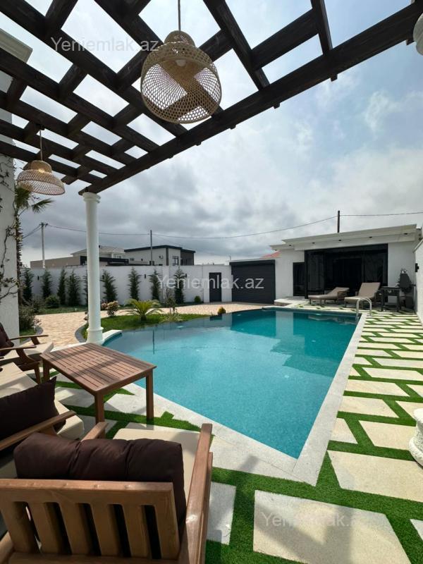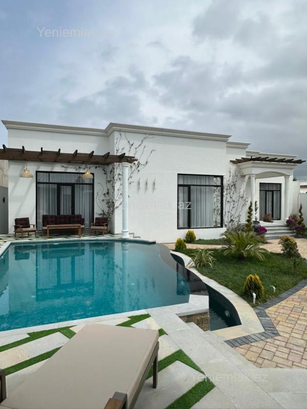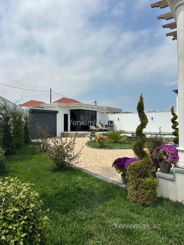 Mərdəkan bağlarında, 6 Sotda 1 mərtəbə 200 kv.m 4 otaqlı super bağ evini təklif edir. Bağ evi zal, mətbəx, 3 yataq otağı, eyvan, holl və 3 sanuzeldən ibarətdir. Otaqlarda asılmış pərdə və lyüsturları, hündür tavanları, duş kabinalı sanuzeli, mebelli mətbəxi, quraşdırılmış işıqlandırma sistemi var. Ev yüksək zövq və keyfiyyətlə təmir olunub. Su, qaz, işıq daimidir. İstilik sistemi kombidir, isti döşəməsi var. Həyətində geniş filterli hovuzu, cambalkon besedka, yay-qış mətbəxi, manqalxana, söhbətgah, maşın saxlamaq üçün yer, pultla idarə olunan darvaza, yaşıllıq ərazisi, dekorativ ağacları və gülləri, su anbarı, sensorlu gecə işıqları var. 4 mövsüm yaşamaq üçün əlverişlidir. Yolu qapıya kimi asfaltdır. Kupçası (Çıxarışı) var. Start qiymət.