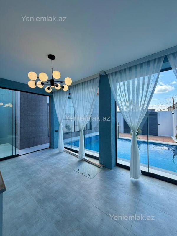 Sizə ekoloji təmiz Mərdəkan qəsəbəsində 3.5 Sotda 1 mərtəbə 180 kv.m 4 otaqlı super bağ evini təklif edirik. Bağ evi zal, mətbəx, 3 yataq otağı, qarderob, holl və 3 sanuzeldən ibarətdir. Otaqlarda asılmış pərdə və lyüsturları, qonaq otağı mebelləri, divar rəsmləri, tv, mətbəx mebeli, hündür tavanları, duş kabinalı sanuzeli, quraşdırılmış işıqlandırma sistemi var. Ev yüksək zövq və keyfiyyətlə təmir olunub. Su, qaz, işıq daimidir. İstilik sistemi kombidir, isti döşəməsi var. Həyətində geniş filterli hovuzu, stol-stulu, manqalxana, maşın saxlamaq üçün yer, mebelli cambalkon besedka, yay-qış mətbəxi, pultla idarə olunan darvaza, dekorativ ağacları və gülləri, su anbarı, sensorlu gecə işıqları var. 4 mövsüm yaşamaq üçün əlverişlidir. Yolu qapıya kimi asfaltdır. Kupçası (Çıxarışı) var. Start qiyməti 340 000 AZN.
