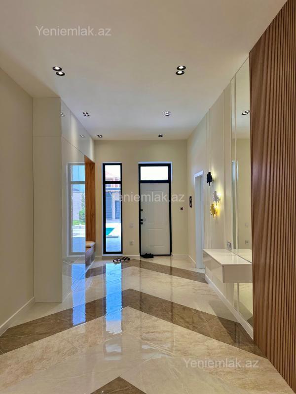 Sizə ekoloji təmiz Mərdəkan qəsəbəsində Bravo Supermarketin arxasında 6.3 Sotda 1 mərtəbə 193 kv.m 4 otaqlı super bağ evini təklif edirik. Bağ evi zal, mətbəx, 3 yataq otağı, qarderob, holl və 2 sanuzeldən ibarətdir. Otaqlarda asılmış pərdə və lyüsturları, hündür tavanları, duş kabinalı sanuzeli, mebelli mətbəxi, quraşdırılmış işıqlandırma sistemi var. Ev yüksək zövq və keyfiyyətlə təmir olunub. Su, qaz, işıq daimidir. İstilik sistemi kombidir, isti döşəməsi var. Həyətində geniş filterli daşma hovuzu, lejankaları, cambalkon besedka, yay-qış mətbəxi, manqalxana, söhbətgah, maşın saxlamaq üçün yer, pultla idarə olunan darvaza, yaşıllıq ərazisi, dekorativ ağacları və gülləri, su anbarı, sensorlu gecə işıqları var. 4 mövsüm yaşamaq üçün əlverişlidir. Yolu qapıya kimi asfaltdır. Kupçası (Çıxarışı) var. Start qiyməti 420 000 AZN.