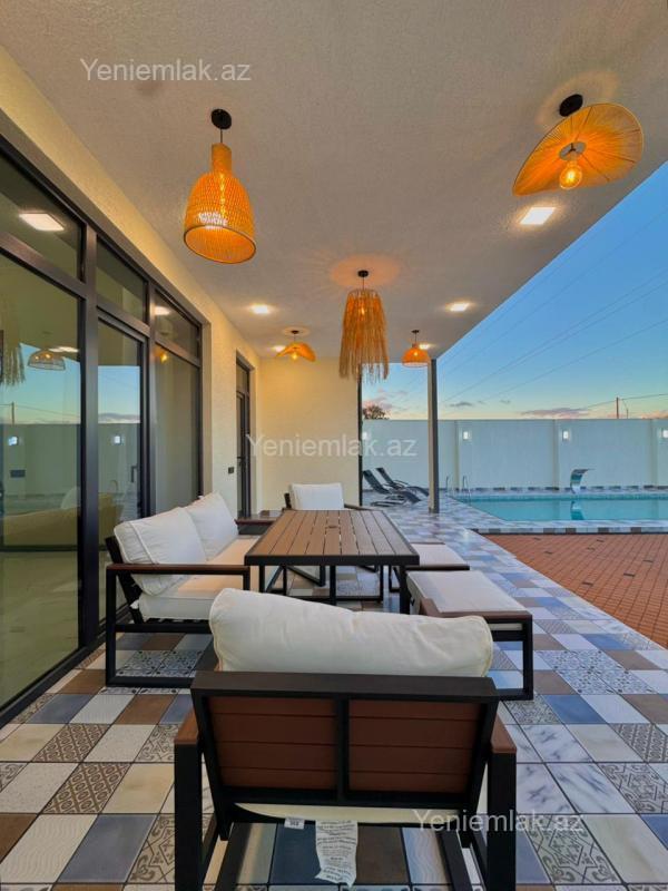 Tam Əşyalı!! Sizə ekoloji təmiz Şüvəlan qəsəbəsində 5 Sotda 1 mərtəbə 180 kv.m 4 otaqlı super bağ evini təklif edirik. Bağ evi zal, mətbəx, 3 yataq otağı, holl və 3 sanuzeldən ibarətdir. Otaqlarda asılmış pərdə və lyüsturları, mebelləri, divar rəsmləri, hündür tavanları, duş kabinalı sanuzeli, mebelli mətbəxi, quraşdırılmış işıqlandırma sistemi var. Ev yüksək zövq və keyfiyyətlə təmir olunub. Su, qaz, işıq daimidir. İstilik sistemi kombidir, isti döşəməsi var. Həyətində geniş filterli hovuzu, şəlaləsi, lejankaları, cambalkon besedka, stol-stulu, manqalxana, yay-qış mətbəxi, maşın saxlamaq üçün yer, pultla idarə olunan darvaza, dekorativ ağacları və gülləri, su anbarı, sensorlu gecə işıqları var. 4 mövsüm yaşamaq üçün əlverişlidir. Yolu qapıya kimi asfaltdır. Kupçası (Çıxarışı) var. Start qiyməti 345 000 AZN.