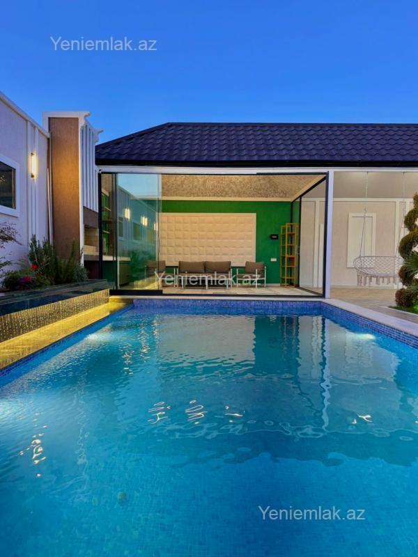 Sizə ekoloji təmiz Şüvəlan qəsəbəsində 5 Sotda 1 mərtəbə 180 kv.m 4 otaqlı super bağ evini təklif edirik. Bağ evi zal, mətbəx, 3 yataq otağı, holl və 3 sanuzeldən ibarətdir. Otaqlarda asılmış pərdə və lyüsturları, mebelləri, divar rəsmləri, hündür tavanları, duş kabinalı sanuzeli, mebelli mətbəxi, quraşdırılmış işıqlandırma sistemi var. Ev yüksək zövq və keyfiyyətlə təmir olunub. Su, qaz, işıq daimidir. İstilik sistemi kombidir, isti döşəməsi var. Həyətində geniş filterli hovuzu (7x3.5), şəlaləsi, cambalkon besedka, stol-stulu, manqalxana, yay-qış mətbəxi, maşın saxlamaq üçün yer, pultla idarə olunan darvaza, dekorativ ağacları və gülləri, su anbarı, sensorlu gecə işıqları var. 4 mövsüm yaşamaq üçün əlverişlidir. Yolu qapıya kimi asfaltdır. Kupçası (Çıxarışı) var. Start qiyməti 450 000 AZN.