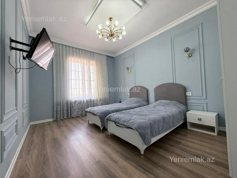 Novxanıda Mariana Trench-dən 1 km içəridə 6 sotun içində inşa edilmiş 2 mərtəbəli tam təmirli villamız satışdadır. Evin ümumi sahəsi 270 kv/m, 5 geniş otaqdan(4 yataq otağı 1 böyük studio tipli zal) və 3 ədəd s/q ibarətdir. 70 kv/m sahəsi olan geniş terrası mövcutdur. Üstünlüklər: Filtr sistemli hovuz, manqalxana,pultla idarə olunan darvaza, dekorativ və meyvə ağacları, müasir kamera sistemi(7/24 telefon vasitəsi ilə müşahidə imkanı). Qaz,su,işıq daimidir. Sənədlər tam qaydasındadır, ipotekaya yararlıdır.