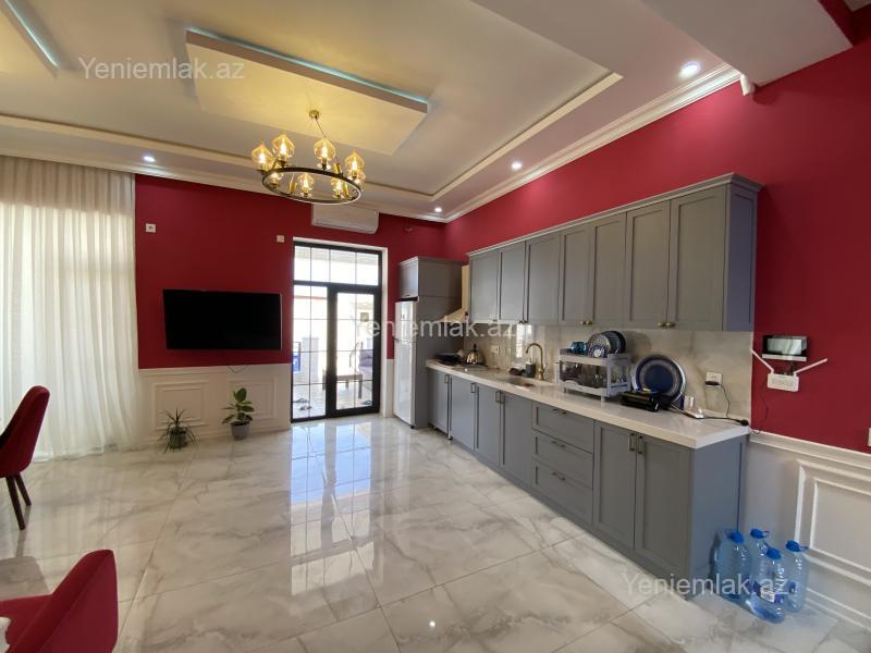DƏYƏRİNDƏN AŞAĞI !!! QİYMƏT ENDİ !!! Novxanıda Mariana Trench restoranından 1 km içəridə müasir üslubda, xüsusi zövqlə yeni tikilmiş , 2 mərtəbəli, 5 otaqlı, 4 tərəfi hasarlı, super təmirli və şəraitli, çox sakit bir küçədə yerləşən villa satılır. Ətrafda daimi və mövsümi yaşayış olan villalar, market, xəstəxana, restoranlar və əyləncə mərkəzləri vardır. Villa əşyaları ilə birlikdə satılır. Tikinti şəxsi istifadə üçün nəzərdə tutulduğundan yüksək keyfiyyətli və xarici istehsallı materiallardan istifadə edilmişdir. Villanın daimi bütün kommunikasiya xətləri - su , işıq, qaz, kanalizasiya, internet var. Villanın ərazisi 6 sotdur. Tikinti sahəsi 270 kv.m-dir. Ev 4 yataq otağı, 1 böyük studyo tipli qonaq otağı, ikisi evdə, biri isə həyətdə olmaqla, 3 sanuzeldən ibarətdir. Döşəməsi keramoqranitdir, istilik sistemlidir. Bütün otaqlar mebellə təchiz edilib, eyni zamanda evdə 2 ədəd split sistemli kondisioner, 1 ədəd LG TV quraşdırılıb. Villanın 70 kvm terrası, terasda yay istirahəti üçün mebeli, gözəl manqalxanası, filtr sistemi quraşdırılmış hovuzu, pultla açılıb bağlanan darvazası, həyətində dekorativ ağacları, yaşıllığı var. Villada müasir həm kamera, həm də siqnalizasiya mühafizə sistemi quraşdırılıb və DİN Dövlət Mühafizə İdarəsi tərəfindən mühafizə edilməkdədir. Kamera vasitəsilə 24 saat mobil telefonla muşahidə mümkündür. Evin düz yanından marşrut xətti işləyir. Villaya bitişik əlavə 6 sot da torpaq sahəsi var və maraqlı olarsa , oda satışdadır. Real alıcıya endirim olunacaq.