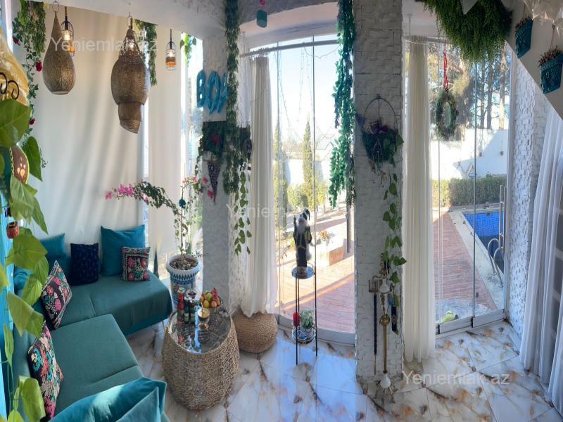 Novxanıda Prezident bağları deyilən ərazidə yerləşir. Torpaq sahəsi 4,5 sotdur. Ev ümumi 160kv ibarətdir, yolu tam asvalt, ayrı məhləsi şlaqbaunu,qazı,suyu,işığı,kanalizasiya xətti,internet xətti,24saat mühavizə xidməti var ayrıca həyətində natamam təmir kaminli saunası,mqnqalı,ocaq yeri, 7x4 hovuzu, pult ilə idarə olunan darvazası və 8 tonluq su çəni və bahalı dekorativ ağaclar var, izmirdən xüsusi sifarişlə begonvil ağaclarıda gətirilmişdir. Dənizə full ponarama. Zal-mətbəx,sanuzel,teras,qarderob 2 yataq otağı mövcuddur istiyən adam qarderobu çox yekədi yataq otağıda edə bilər. Yataq otağında kamini mövcuddur,8 ilin evidir. Əşyalı satılır evdən televizor xaladelnik və şəxsi əşyalar götürüləcək, gördüyünüz qiymət yay aylarına qədərdir. Ciddi şəxslər narahat etsin... Ofis Hakkı 2%dir.