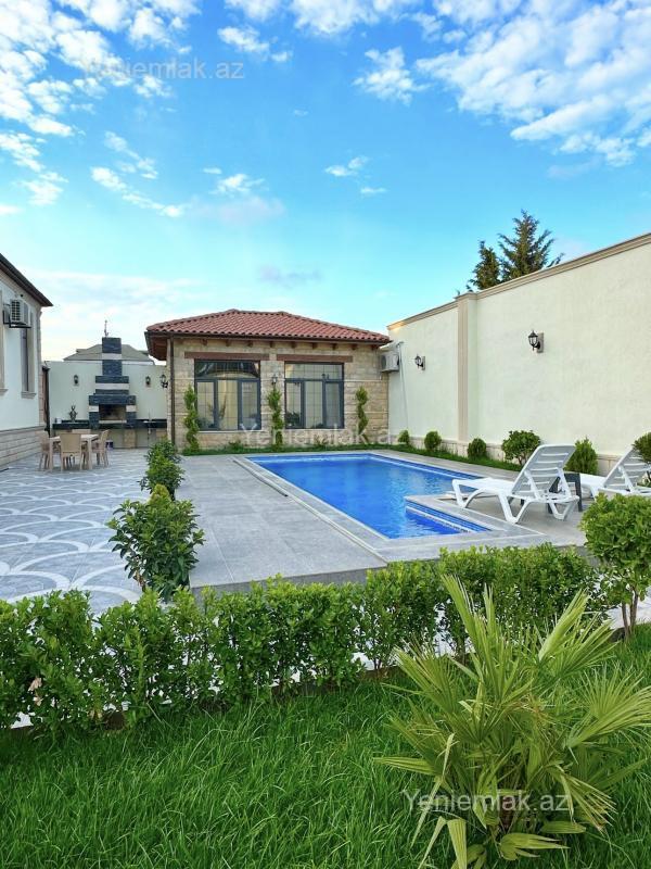 Merdekanda,en prestijli mehlede, Sexsi Tikili.. Yeni uslubda tikilmis,Kiramit dam,Monolit beton Yoldan 50 m iceride.. Postoyanno yasayis ucun tikilmisdir. Basseyn,Besedka,Balkon,Mangalnaya.. Heyetde parkovka, yasillig,dekorativ ve meyve agaclari. Kamera 24/7, sensor isiglanma..Jalyuz daravaza.. Real aliciyla danisig yeri var. Ofis haggi 2 %..