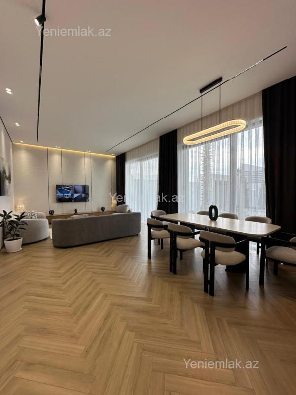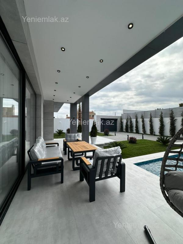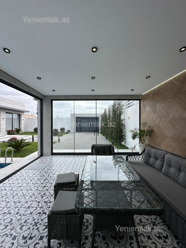 Ekoloji təmiz Merdekan qəsəbəsində, 6 Sotda 1 mərtəbə 250 kv.m 5 otaqlı super bağ evini təklif edir. Bağ evi zal, mətbəx, 4 yataq otağı, eyvan, holl və 3 sanuzeldən ibarətdir. Otaqlarda asılmış pərdə və lyüsturları, hündür tavanları, duş kabinalı sanuzeli, mebelli mətbəxi, quraşdırılmış işıqlandırma sistemi var. Ev yüksək zövq və keyfiyyətlə təmir olunub. Su, qaz, işıq daimidir. İstilik sistemi kombidir, isti döşəməsi var. Həyətində geniş filterli hovuzu, cambalkon besedka, yay-qış mətbəxi, manqalxana, söhbətgah, maşın saxlamaq üçün yer, pultla idarə olunan darvaza, yaşıllıq ərazisi, dekorativ ağacları və gülləri, su anbarı, sensorlu gecə işıqları var. 4 mövsüm yaşamaq üçün əlverişlidir. Yolu qapıya kimi asfaltdır. Kupçası (Çıxarışı) var. Start qiymət.