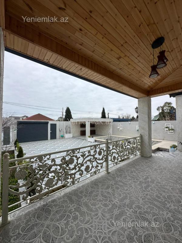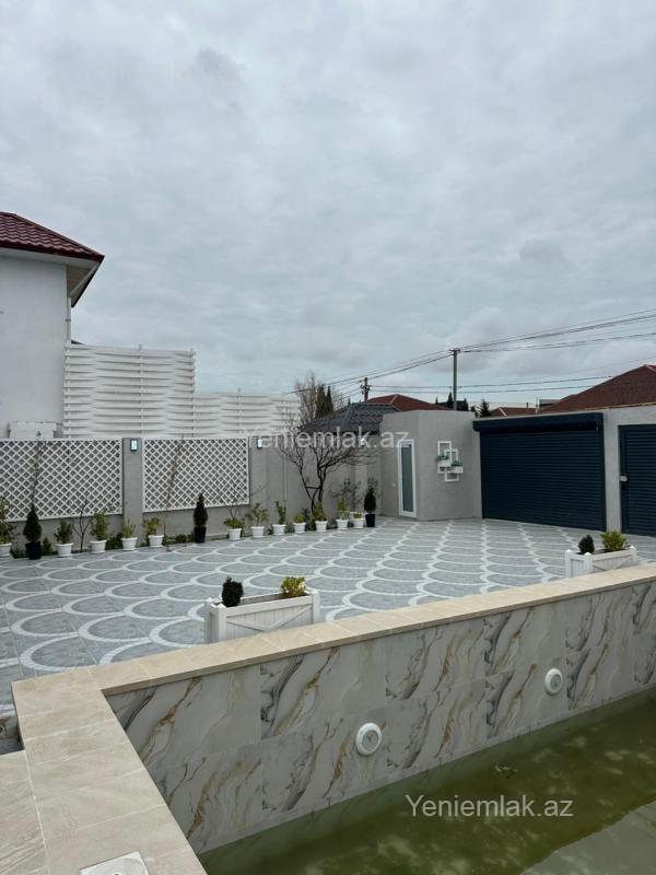 Ekoloji təmiz Merdekan qəsəbəsində, 5 Sotda 1 mərtəbə 220 kv.m 5 otaqlı super bağ evini təklif edir. Bağ evi zal, mətbəx, 4 yataq otağı, eyvan, holl və 3 sanuzeldən ibarətdir. Otaqlarda asılmış pərdə və lyüsturları, hündür tavanları, duş kabinalı sanuzeli, mebelli mətbəxi, quraşdırılmış işıqlandırma sistemi var. Ev yüksək zövq və keyfiyyətlə təmir olunub. Su, qaz, işıq daimidir. İstilik sistemi kombidir, isti döşəməsi var. Həyətində geniş filterli hovuzu, cambalkon besedka, yay-qış mətbəxi, manqalxana, söhbətgah, maşın saxlamaq üçün yer, pultla idarə olunan darvaza, yaşıllıq ərazisi, dekorativ ağacları və gülləri, su anbarı, sensorlu gecə işıqları var. 4 mövsüm yaşamaq üçün əlverişlidir. Yolu qapıya kimi asfaltdır. Kupçası (Çıxarışı) var. Start qiymət.