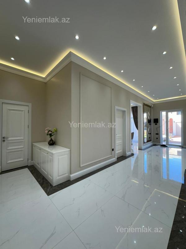 Mərdəkan qəsəbəsində, 5 Sotda 1 mərtəbə 220 kv.m 5 otaqlı super bağ evini təklif edir. Bağ evi zal, mətbəx, 3 yataq otağı, eyvan, holl və 2 sanuzeldən ibarətdir. Otaqlarda asılmış pərdə və lyüsturları, hündür tavanları, duş kabinalı sanuzeli, mebelli mətbəxi, quraşdırılmış işıqlandırma sistemi var. Ev yüksək zövq və keyfiyyətlə təmir olunub. Su, qaz, işıq daimidir. İstilik sistemi kombidir, isti döşəməsi var. Həyətində geniş filterli hovuzu, cambalkon besedka, yay-qış mətbəxi, manqalxana, söhbətgah, maşın saxlamaq üçün yer, pultla idarə olunan darvaza, yaşıllıq ərazisi, dekorativ ağacları və gülləri, su anbarı, sensorlu gecə işıqları var. 4 mövsüm yaşamaq üçün əlverişlidir. Yolu qapıya kimi asfaltdır. Kupçası (Çıxarışı) var. Start qiymət.