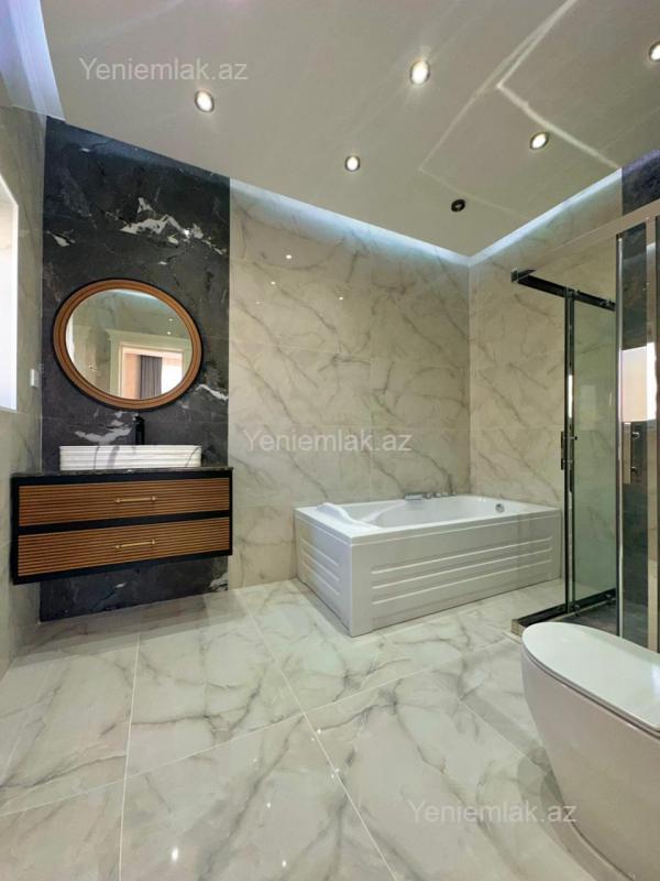 Sizə ekoloji təmiz Mərdəkan qəsəbəsində əsas yoldan 30 metr məsafədə 8 Sotda 1 mərtəbə 300 kv.m 5 otaqlı super bağ evini təklif edirik. Bağ evi zal, mətbəx, 4 yataq otağı, qarderob, holl və 3 sanuzeldən ibarətdir. Otaqlarda asılmış pərdə və lyüsturları, hündür tavanları, duş kabinalı sanuzeli, mebelli mətbəxi, quraşdırılmış işıqlandırma sistemi var. Ev yüksək zövq və keyfiyyətlə təmir olunub. Su, qaz, işıq daimidir. İstilik sistemi kombidir, isti döşəməsi var. Həyətində geniş filterli hovuzu, cambalkon besedka, yay-qış mətbəxi, stol-stulu, manqalxana, söhbətgah, maşın saxlamaq üçün yer, pultla idarə olunan darvaza, yaşıllıq ərazisi, dekorativ ağacları və gülləri, su anbarı, sensorlu gecə işıqları var. 4 mövsüm yaşamaq üçün əlverişlidir. Yolu qapıya kimi asfaltdır. Kupçası (Çıxarışı) var. Start qiyməti 490 000 AZN.