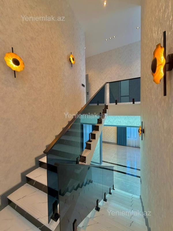Sizə ekoloji təmiz Şüvəlan qəsəbəsində 3 Sotda 2 mərtəbə 200 kv.m 5 otaqlı super bağ evini təklif edirik. Bağ evi zal, mətbəx, 4 yataq otağı, holl və 3 sanuzeldən ibarətdir. Otaqlarda asılmış pərdə və lyüsturları, hündür tavanları, mebelli mətbəxi, duş kabinalı sanuzeli, quraşdırılmış işıqlandırma sistemi var. Ev yüksək zövq və keyfiyyətlə təmir olunub. Su, qaz, işıq daimidir. İstilik sistemi kombidir, isti döşəməsi var. Həyətində geniş filterli hovuzu, manqalxana, maşın saxlamaq üçün yer, besedka, pultla idarə olunan darvaza, dekorativ ağacları və gülləri, su anbarı, sensorlu gecə işıqları var. 4 mövsüm yaşamaq üçün əlverişlidir. Yolu qapıya kimi asfaltdır. Kupçası (Çıxarışı) var. Start qiyməti 330 000 AZN.