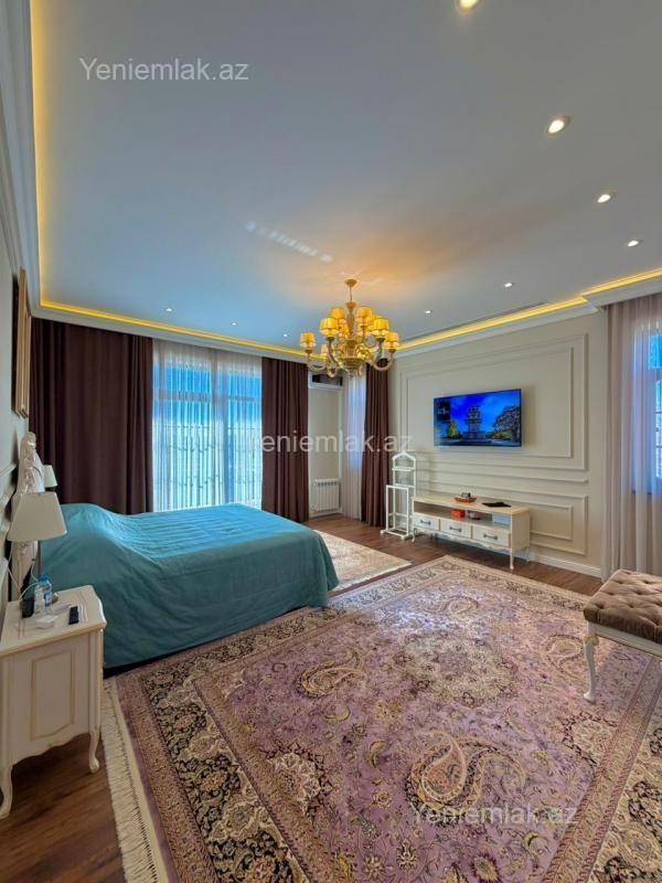 Tam Əşyalı!! Sizə ekoloji təmiz Şüvəlan qəsəbəsində, ən hündür və hava təmiz olan ərazidə, əsas yoldan 200 metr məsafədə 50 Sotda 3 mərtəbə 2000 kv.m 9 otaqlı şəxsi tikili super bağ evini təklif edirik. Bağ evi zal, mətbəx, 8 yataq otağı, çox geniş qarderoblar (10), holl və 10 sanuzeldən ibarətdir. Otaqlarda asılmış pərdə və lyüsturları, bütün otaqlarda tv və kondisioner, işlək lift, hündür tavanları, divar rəsmləri, duş kabinalı sanuzeli, mebelli mətbəxi, quraşdırılmış işıqlandırma sistemi var. Ev yüksək zövq və keyfiyyətlə təmir olunub. Su, qaz, işıq daimidir. İstilik sistemi kombidir, isti döşəməsi var. Həyətində geniş filterli hovuzu, 3-ci mərtəbədə geniş terası, mebelli cambalkon besedka, manqalxana, yay-qış mətbəxi, qonaq evi, istirahət məkanı, geniş qapalı parkinq zona (5 avtomobillik), pultla idarə olunan darvaza, çox sayda meyvə və dekorativ ağacları, gülləri, tenis kortu, futbol stadionu, fitnes zona, sauna, su anbarı, sensorlu gecə işıqları var. 4 mövsüm yaşamaq üçün əlverişlidir. Yolu qapıya kimi asfaltdır. Kupçası (Çıxarışı) var. Start qiyməti 4 000 000 AZN.