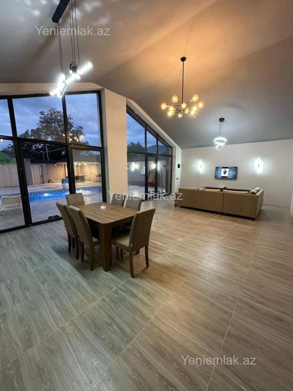 Qebele vendam kendinde yerlesen muasir a frame tipli evimiz gunluk kraye verilir 3 yataq otagi3 hamam otagi var 6/7 neferlik evdir Hovuz8/4 olcudedir usag ucunde hovuzun yeri var Isti baseynlidir