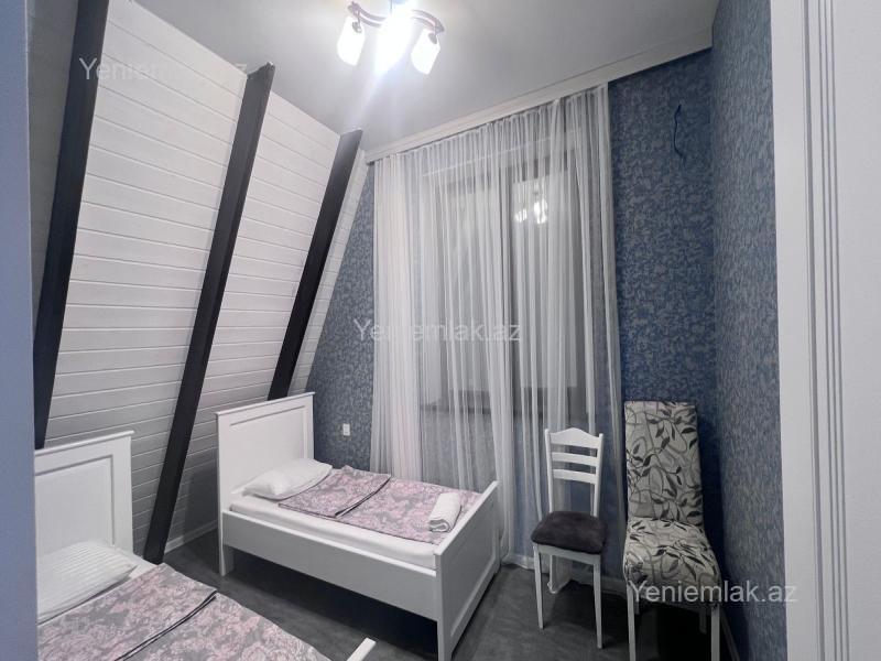 Qəbələ rayonunda modern üslubda tikilmiş 3 yataq otaği 2 hamam otaği böyük zal ve mətbəxdən ibarət A frame evimiz günlük kirayə verilir . Çarpayi sayi 7 - 8 ədəd . Həyətində manqal şiş, samavar var