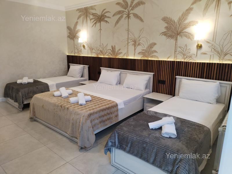 ?QAPALI / AÇIQ Hovuzlu Villa Qəbələnin mərkəzinə yaxın yerdə(pastar məhəlləsində)yerləşir ? 5 yataq otağından, 1 böyük zal, daxili mətbəx, çöl/yay mətbəx, 4 sanitar qovşaqdan ibarətdir. ????16- 18nəfərin gecələməsi üçün rahat şərait qurulub. ? Kombi sistemi ?♀️ Qapalı/açıq hovuz(filtirli8x6) ?️ 6 maşınlıq parking ? Bisetka, ☕️ Samovar, ♨️ Sac, ? Manqal (özəl tikilişli) ❄️ Kondisioner ? Tv(smart), ? Wifi, ? Qab yuyan, ? Paltar yuyan, ? kofe maşını, ? elektirik soba, ? Ütü, ? Fen və digər lazimi avadanlıqlarla təchiz olunmuşdur. ? Əlavə ödənişlə Bakıdan və Qəbələ dəmiryol vağzalında transportda mümkündür (11 nəfərlik mikroavtobus) təklif olunur.