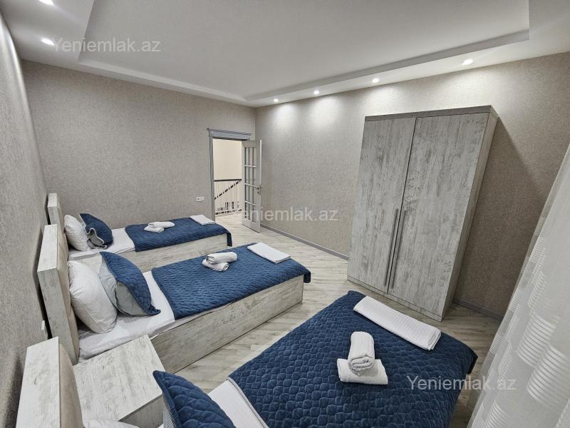 Qebele seher Qəbələnd Əyləncə mərkəzi yaxınlığında yerləşir 4 yataq otagi 1 ci ve 2 ci yataq otagi Heresinde 2 neferlik taxt yataq, 3 ce 4 cu yataq otağında Hərəsində 3 tek yatacaq Cemi 10 neferlil tam yatacaq 2 hamam ws - Her mərtəbədə Isti hovuzlu Geniş heyetli villadir.