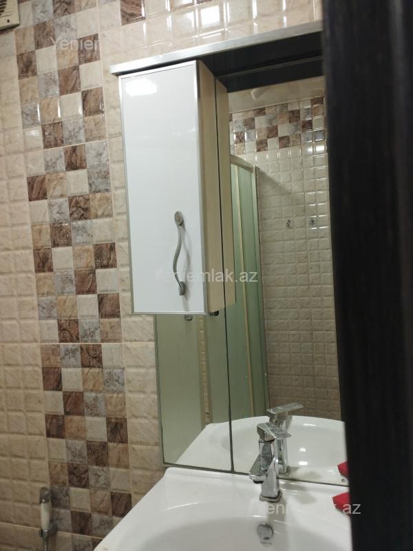 Mənzil 1 otaqdan 2 otağa düzəlib 55 kv.m.tam şəraitli əşyalı açıq eyvan,kombi, kondisioner, paltar yuyan və sairə var 3 ədəd lift var ailəli şəxslərə verilir