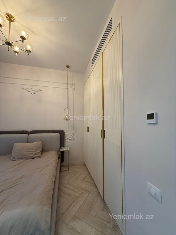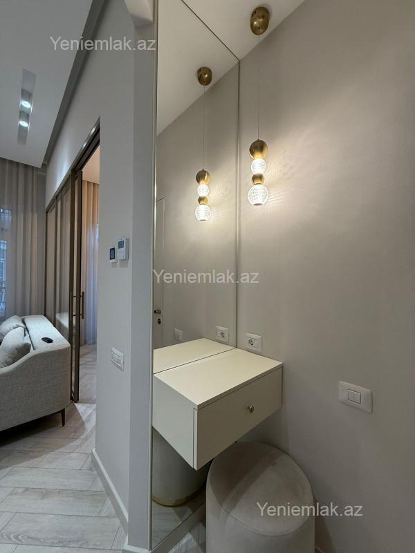 Şəhərin ən elit ərazilərindən biri olan Ağ Şəhərdə, Nizami Parkı və Fəvvarələr Meydanının yaxınlığında yerləşən, London üslubunda inşa olunmuş prestijli Knightsbridge Residence kompleksində, dəniz mənzərəli, 2 otaqlı, modern dizaynlı əla təmirli mənzil kirayə verilir. Mənzil komfortlu və rahat yaşam üçün zəruri olan bütün müasir mebel və məişət texnikası ilə tam təchiz olunub. İstilik sistemi kombidir, isti döşəmə və hər otaqda kondisioner mövcuddur. Kompleksin üstünlükləri: 7/24 mühafizə və təhlükəsizlik xidməti Yalnız sakinlər üçün nəzərdə tutulmuş qapalı həyət Yeraltı avtodayanacaq Ətraflı məlumat və baxış üçün əlaqə saxlaya bilərsiniz. Qeyd: Şirkətin xidmət haqqı icarəçi tərəfindən 30% təşkil edir.