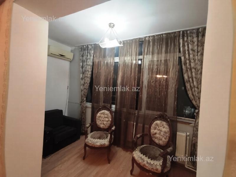 Elmler metrosunun 200 metr mesefesinde,Huseyn Cavid parki yaxinliginda. Edliyye Nazirliyinin yaninda. 5 mertebeli binanin 5ci mertebesinde 2 otaqli yaxshi temirli,Eshyali,zəruri avadanlıqlarla təchiz olunub (soyuducu, paltaryuyan, televizor, kondisioner, kombi və s.). Bina Stalinka layihəlidir və otaqları genişdir, sahəsi 65 kv/m təşkil edir. Mənzil yalnız ailələrə və ya xanım tələbələrə uzun müddətli (minimum 6 aylıq) kirayə verilir. Mənzilin sonuncu ayının kirayə ödənişi depozit kimi alınır.