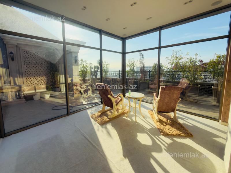 Şəhərin mərkəzi hissəsində, Nərimanov metrosuna cəmi bir neçə dəqiqəlik piyada məsafədə, Faiq Yusifov küçəsində yerləşən bu mənzil, lüks həyat tərzi axtaranlar üçün nadir tapıntıdır. Bina infrastruktur cəhətdən çox əlverişli ərazidədir. Ümumi Parametrlər: Sahə: 400 kvm (Geniş və işıqlı planlaşdırma) Mərtəbə: 18/18 (Sonuncu mərtəbə tamami lə bu mənzilə məxsusdur – tam izolyasiya və sakitlik) Otaq Sayı: 3 (Geniş qonaq otağı və yataq otaqları) Vəziyyəti: Yüksək səviyyəli təmir, tam əşyalı və yaşayış üçün zəruri olan bütün avadanlıqlarla təmin olunub. Möhtəşəm Teras: Mənzilin ən böyük üstünlüyü, şəhərin səs-küyündən uzaq, şəxsi istirahət zonasına malik olmasıdır: Dekorativ Şəlalə: Terasda təbiət abu-havası yaradan xüsusi dizayn. Qapalı Söhbətgah (Qış bağçası): Şüşəbənd daxilində ilboyu istifadəyə yararlı geniş istirahət sahəsi. Terasda yerləşən söhbətgahın daxilində ayrıca mətbəx avadanlıqları və şəxsi hamam otağı mövcuddur (qonaqları mənzilə daxil etmədən burada qarşılamaq imkanı). Digər Üstünlüklər: 24/7 Mühafizə olunan bina və sürətli liftlər. Şəhərə və panoramik mənzərəyə açılan geniş pəncərələr. Yaxınlıqda parklar, məktəblər, fitnes mərkəzləri və restoranlar. Əlavə məlumat üçün əlaqə saxlamağınız xahiş olunur