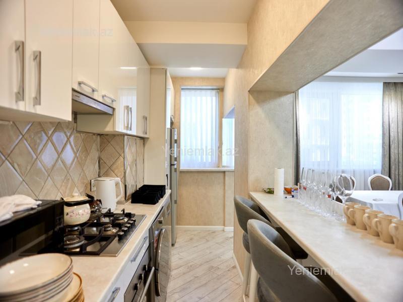 14 mərtəbəli müasir binanın 6-cı mərtəbəsində yerləşən (liftlə qalxarkən 5-ci düymə) studio tipli, tam əşyalı mənzil kirayə verilir. Mənzil 3 otaqlı, 92 kv.m sahəyə malikdir və yaşayış üçün tam hazır vəziyyətdədir. Binanın birbaşa altında McDonald’s, aptek, market və gündəlik tələbat üçün bütün vacib obyektlər mövcuddur. Rahat infrastrukturu və mərkəzi lokasiyası ilə seçilir. Xarici vətəndaşlara da verilir. Rahat və komfortlu yaşayış üçün ideal seçim.