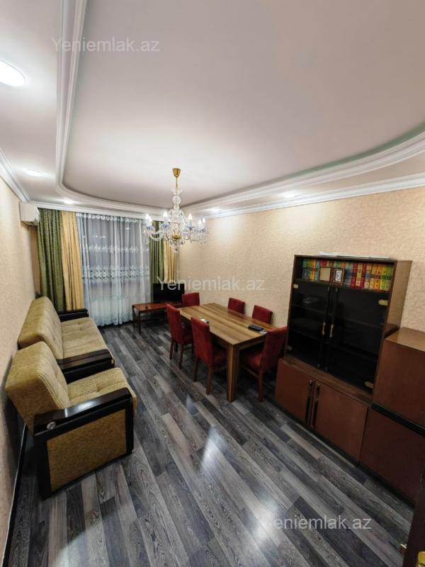 Qara Qarayev metrosu çıxışı,5 mərtəbənin,4-cü mərtəbəsində,3 otaqlı,təmirli,əşyalı mənzil kirayə verilir. Yalnız ailələrə verilir. Bütün texnika mövcuddur (kombi sistemi, 2 kondisioner, paltaryuyan və s).Xidmət haqqı 20 faiz.