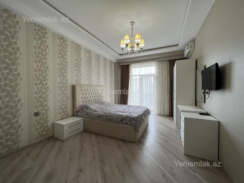 Хатаинский район, в Белом Городе, в элитной новостройке сдаётся 3-х комнатная квартира. Отличный ремонт. Этаж 5/7. Общая площадь 130 кв.м., паркетные полы с подогревом, высокие потолки. 2 с/у. Новая гостиная и спальная мебель. КАТВ, интернет-wifi, 2 плазменныеx телевизорa, 4 сплит-кондиционера. Встроенная кухня с бытовой техникой. Отопительная система “ Комби”. Гардеробная комната. 2 открытых балкона. Охраняемый двор, 2 скоростной лифт, парковочные места, подземный гараж, детская площадка. (Табриз) --------------------------- Xətai rayonu, “Ağ Şəhər ”-də, tam yaşayışlı yeni tikilidə 3 otaqlı mənzil kirayə verilir. Yüksək keyfiyyətli əla təmir. Mərtəbə: 5/7. Ümümi sahəsi 130 m2., Parket döşəmə, döşəmə qızdırıcısı, hündür tavan. 2 s/q. Yeni qonaq və yataq dəsti. KATV, internet-wifi, 2 plazma TV, 4 split-kondisionerlər. Quraşdırılmış mətbəx mebeli və texnikası. İstilik sistemi “Kombi”. Ayrıca qarderob otağı var. 2 açıq eyvanı. Mühafizə olunan həyəti, 1 sürətli lift, yerüstü və yeraltı avto dayanacaqlar, uşaq meydançası. --------------------------- Khatai district, White City, in the new building 3 rooms apartment for rent. 1 living room, 2 bedrooms. View to the sea. Floor 5/7. The total area of 130 sq.m, 2 balconies. 2 bathrooms. Excellent conditions. The new living room bedroom furniture. Heating system Comy . KATV, Internet, 2 plasma TV. 4 air conditioners. Fitted kitchen with appliances. 24- hour security, 1 lift, car parking.