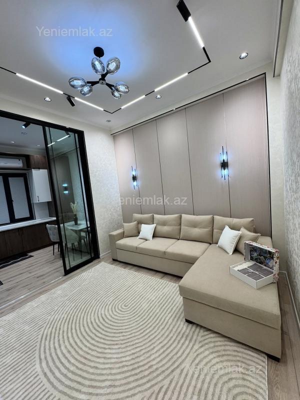 Bakı şəhəri, Xətai Rayonu, Nargilə Dairəsinin yaninda, yeni inşa edilmiş müasir və dəbdəbəli Blue Residence yaşayış kompleksində, 21 mərtəbəli Binanin 15-ci mərtəbəsində Dənizə və Şəhərə möhtəşəm panoramasi olan 3 otaqli mənzil Ailə ve Xarici vətən